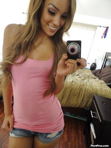 Молодая горячая девка Кэти Бэнкс делает селфи в эро наряде
