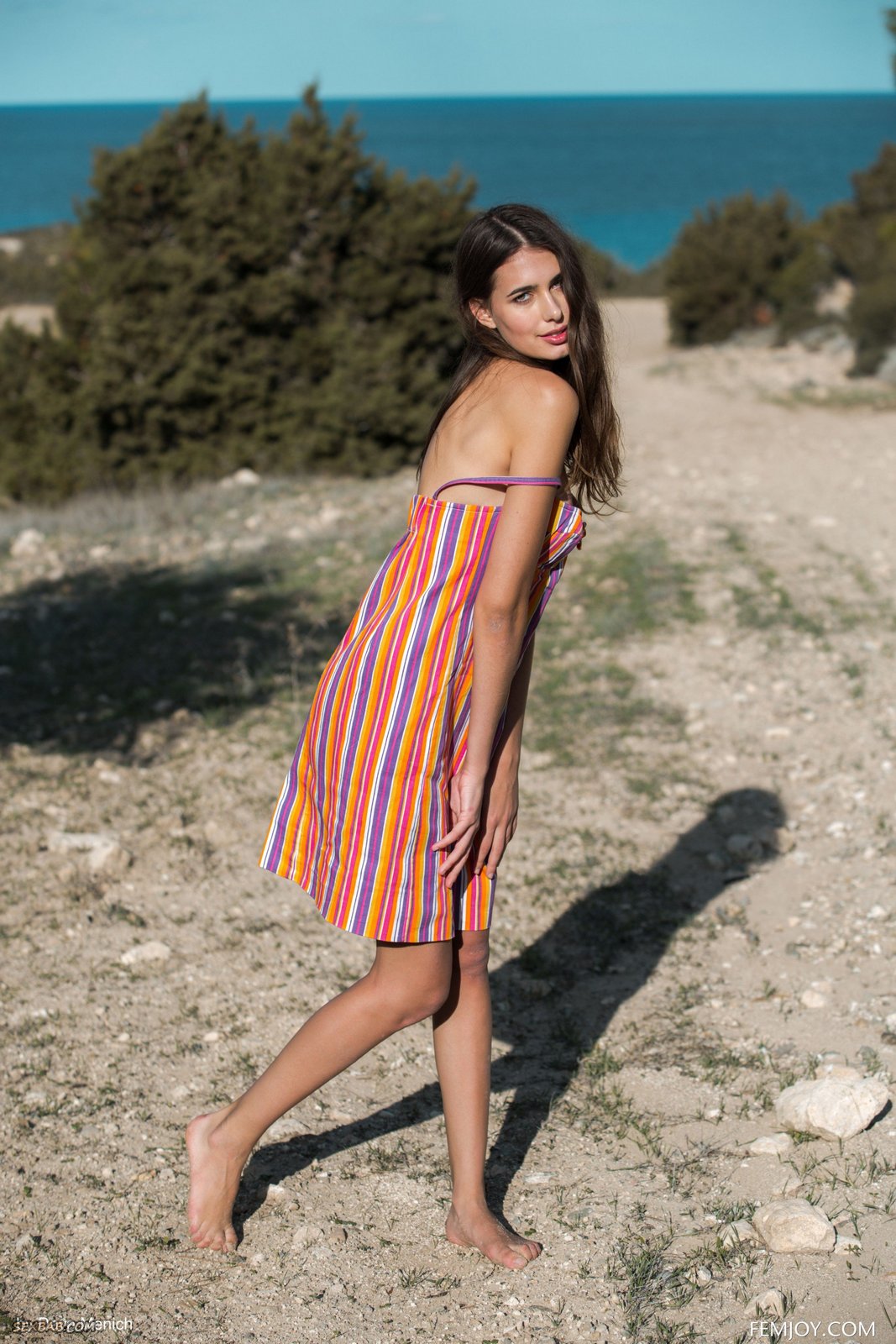 Описание: Эротично стянув перед камерой свое короткое яркое платьице, стройная загорелая брюнетка с маленькими сиськами и нежными коричневыми сосочками возбуждающе позирует голышом прямо на земле и, чувственно извиваясь всем телом, с разных ракурсов засвечивает свою аккуратную бритую письку.
