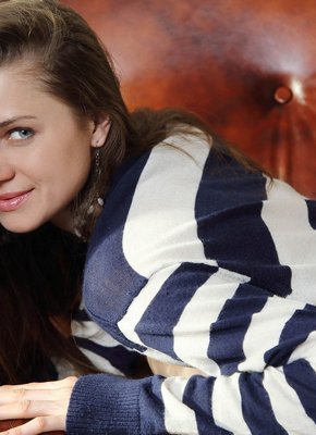 Описание: Разлегшись перед камерой на большом кожаном диване, игривая симпатичная девушка без трусиков бесстыже оголила свои красивые упругие сиськи и на показ раздвинула стройные ножки, похотливо выпятив вперед голую бритую промежность с нежной розовой пиздёнкой.