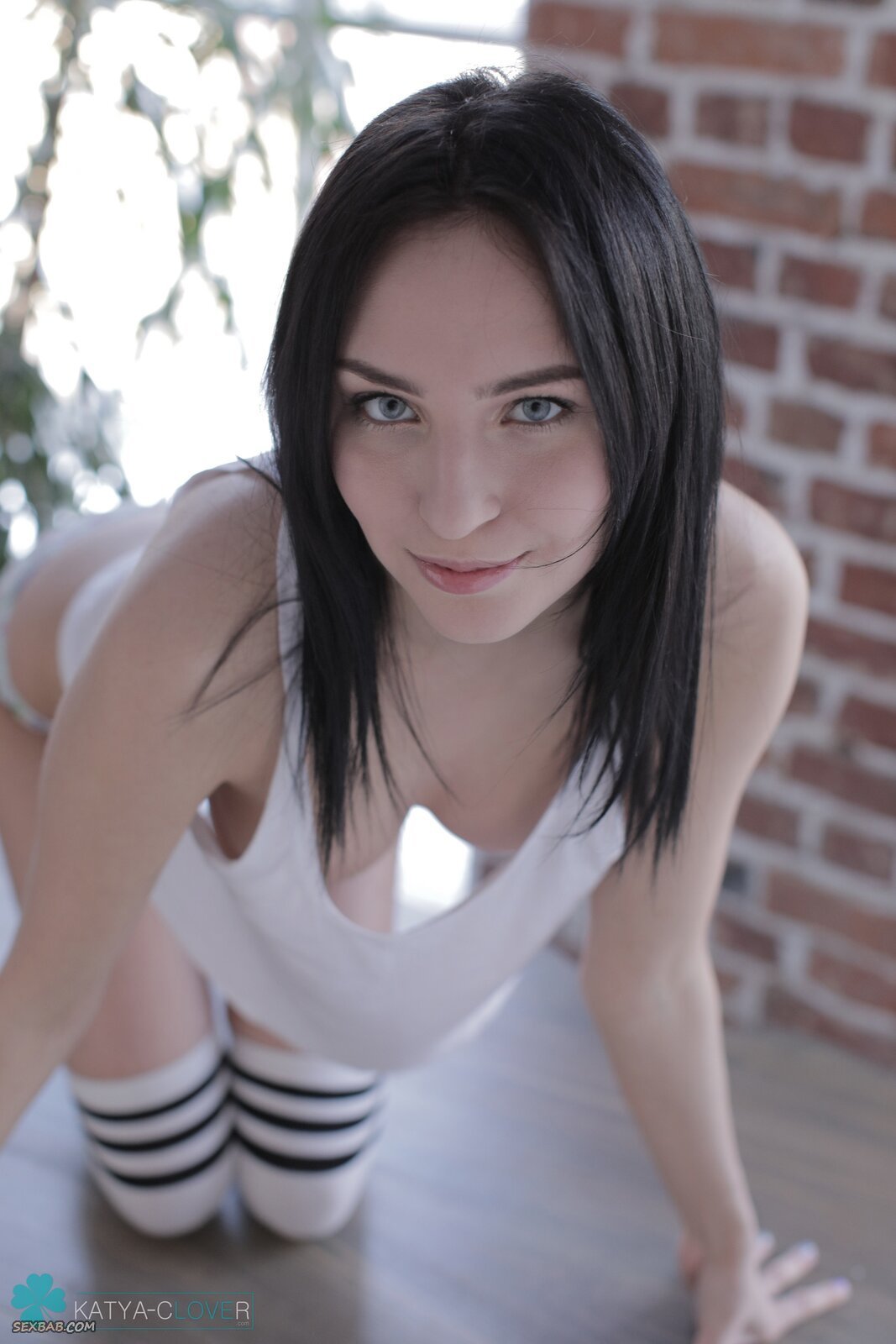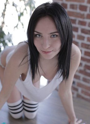Описание: Сидя перед камерой на большом столе, симпатичная брюнетка в длинных белых гольфах игриво позирует всем телом и медленно снимает с себя милые трусики. Раздевшись до гола, обнаженная девушка с аккуратными натуральными сиськами развратно встает в позу раком, крупным планом выпятив свою аппетитную упругую попу с бритой пухлой киской.