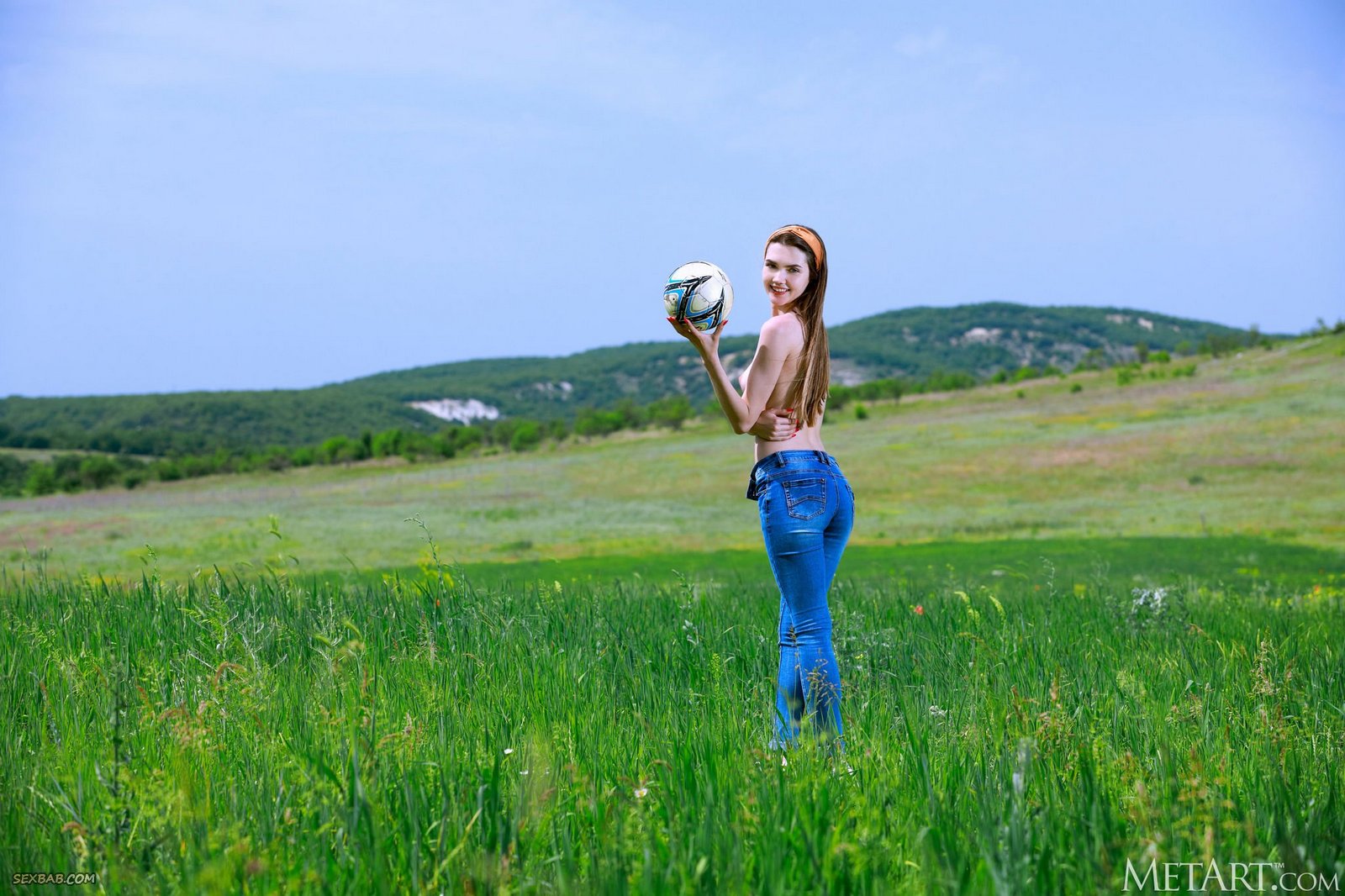 Описание: На свежем воздухе на зеленой сочной травке молодая активная девица с голыми упругими титьками весело играется с мячом. Потом бесстыжая куколка со стройным подтянутым телом постепенно стянула с себя обтягивающие джинсы и полностью оголила перед камерой не только свою аппетитную попку, но и засветила крупным планом бритую пизду с мясистыми половыми губами.