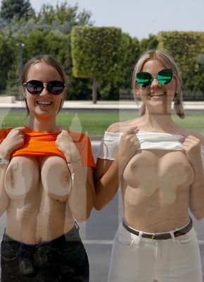 Описание: Две закадычные русские подружки встретились на прогулке с фотографом, который предложил им показать сиськи за деньги прямо на улице. Не долго думая красавицы согласились и задрав свои кофточки позволили насладиться их натуральными титьками приличного размера.