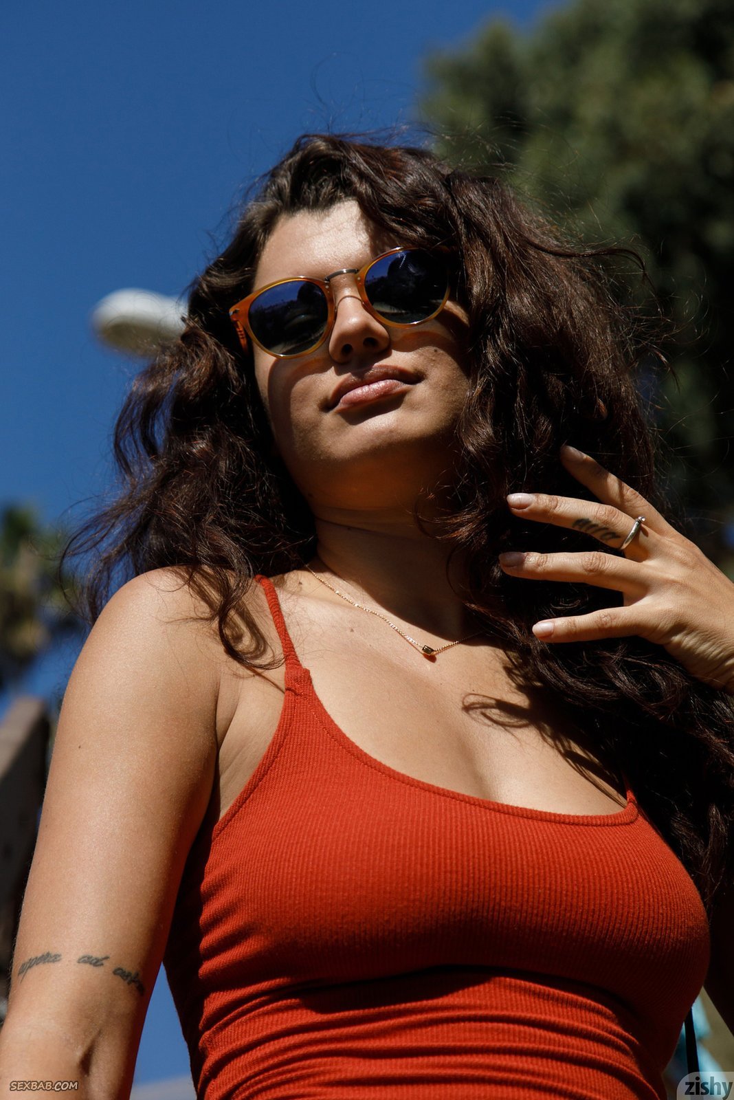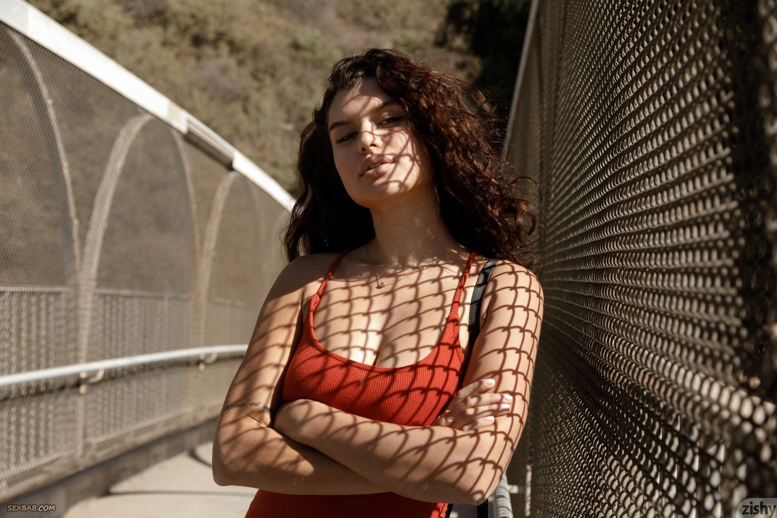 Описание: Привлекательная шатенка с подтянутой попкой позирует в обтягивающем платье с большим разрезом из под которого выглядывают её упругие ягодицы. А что бы порадовать нас ещё сильнее, игривая красавица позволяет взглянуть на её натуральную грудь внушительного размера, которую так и хочется ощутить в своих ладонях.