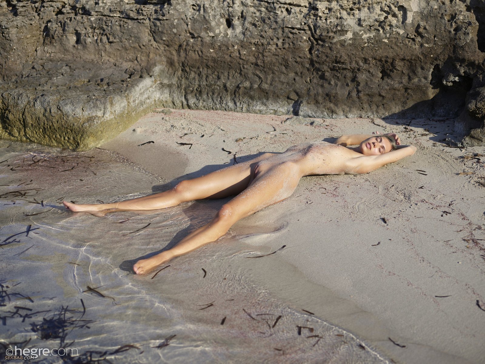 Описание: Отыскав для фото съёмки уединенное местечко на пляже, привлекательная тощая блондинка голая лежит на песке и пробует самые разнообразные позы. Совершенно не скромничая и чувствуя себя уверенной, худощавая девушка с маленькой грудью вертит перед нами своей бритой киской и узкой попкой.