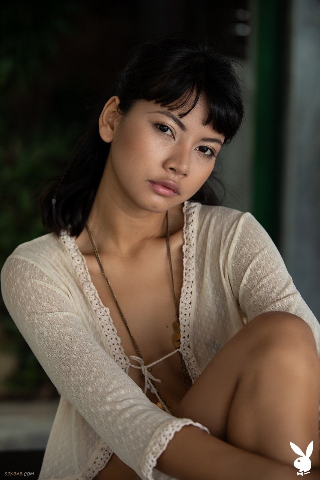 Описание: Обаятельная худенькая азиатка в трусах и кофточке, устроившись на лестнице, эротично позирует и в будущем медленно раздевается догола. Обнаженной сексуальная девушка валяется на ступеньках и с охотой акцентирует внимание оператора на её маленьких сиськах с гладко выбритой киской.