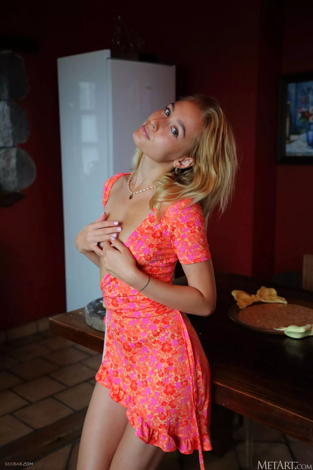 Описание: Нехило возбудившись от жамкания мягкого теста, сексуальная домохозяйка эротично сняла с себя платье с трусиками и похотливо раскрыла рогатку прямо на столе. Нетерпеливо извиваясь всем телом в разных позах, горячая сучка с упругими сиськами крупным планом подставляет к нам свою голую промежность с аккуратной прической на лобке и предлагает любому желающему хорошенько трахнуть ее гладкую розовую пиздёнку перед всеми.