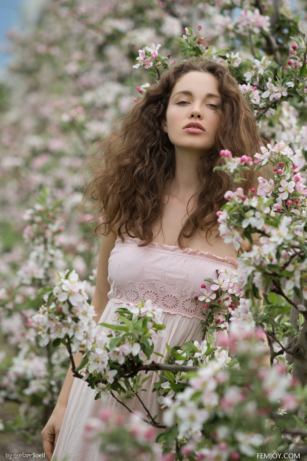 Описание: Соблазнительно скинув с себя платье, кудрявая красавица с шикарной возбуждающей фигурой гуляет по большому цветущему саду. Сексуальная девушка с большой упругой грудью чувственно изгибается в разных эротичных позах, игриво демонстрируя на камеру свою аппетитную мягкую попку и пушистый лобок.