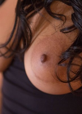 Описание: Проводя вечер за барной стойке с бокалом шампанского, жгучая смуглая брюнетка в коротком платье без трусов соблазнительно оттянула вниз декольте и открыто показала на камеру свои большие висячие сиськи с огромными сосками. А затем задрав короткую юбку и раздвинув ноги, обнаженная телка выставила на показ свою голую бритую пизду с проколотым клитором.