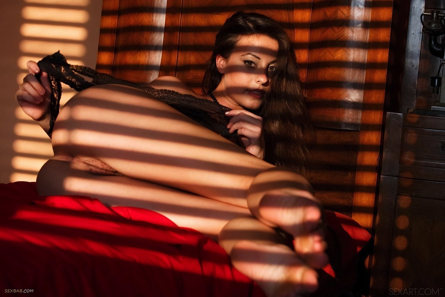 Описание: Надев ажурное нижнее бельё, обнажённая девушка с худенькой талией устраивается в постели и обольстительно позирует в полумраке, ощущая на себе томные взгляды возбуждённого фотографа и испытывая от этого необычайное удовольствие. Довольно быстро красавица с маленькой грудью разделась до гола и стоя раком соблазняет нас своей желанной киской с волосиками на лобке и половых губах.