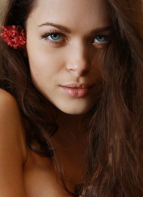 Описание: Невероятно красивая девушка с голубыми глазами и каштановыми волосами, кокетливо позируя перед камерой, старательно и максимально эротично разделась до гола. Обнаженной, сексуальная стройняшка с плоскими сиськами, поворачиваясь к фотографу разными сторонами своего худощавого тела, чаще всего показывает бритую письку с прической на лобке и тощую попку.