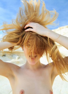 Описание: Полностью голенькая рыженькая девушка с сексуальным телом и маленькими сиськами с набухшими от возбуждения сосочками начинает эротично позировать у моря. В процессе обворожительная крошка старалась ложиться на бок, выставляя на показ попку, а так же немного раздвигать ножки, что позволяло засвечивать бритый лобок и гладенькую письку.