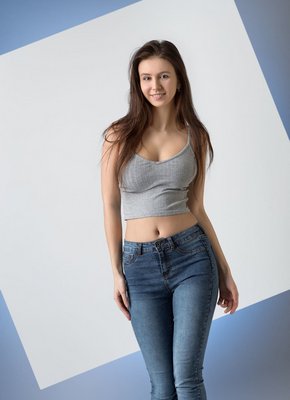Описание: Обаятельная босая девушка высокого роста начинает эротично позировать в джинсах и майке, ощущая удовольствие и в будущем все же оголяясь, показывая крупную натуральную грудь. В обнаженном виде сексуальная стройняшка так же сделала акцент на попочке и гладко выбритую письке.