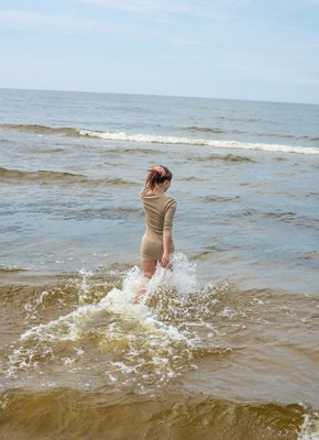 Стройняшка мочит трусики в море