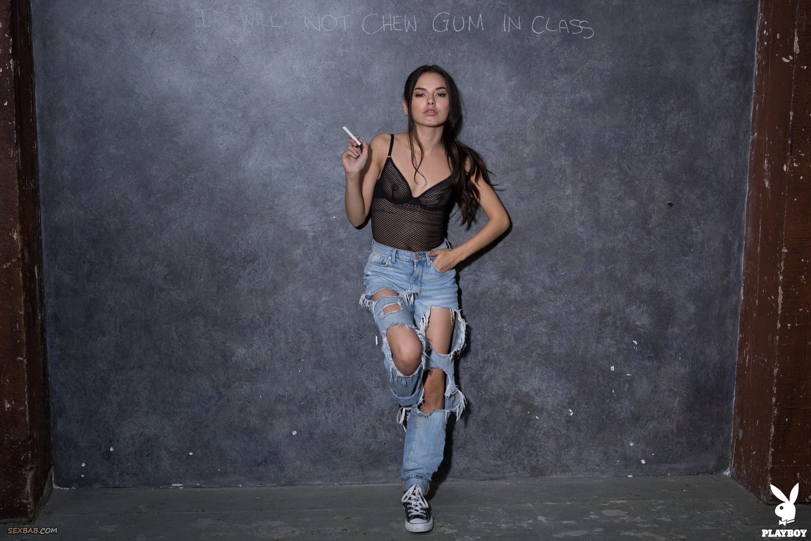 Описание: Молодая и невероятно сексуальная красивая модель с худенькой талией начинает эротично позировать в порванных джинсах и полупрозрачном боди. В будущем стройняшка с маленькой грудью медленно раздевается и немного засвечивает упругую попку с гладенькой писькой и лобком.