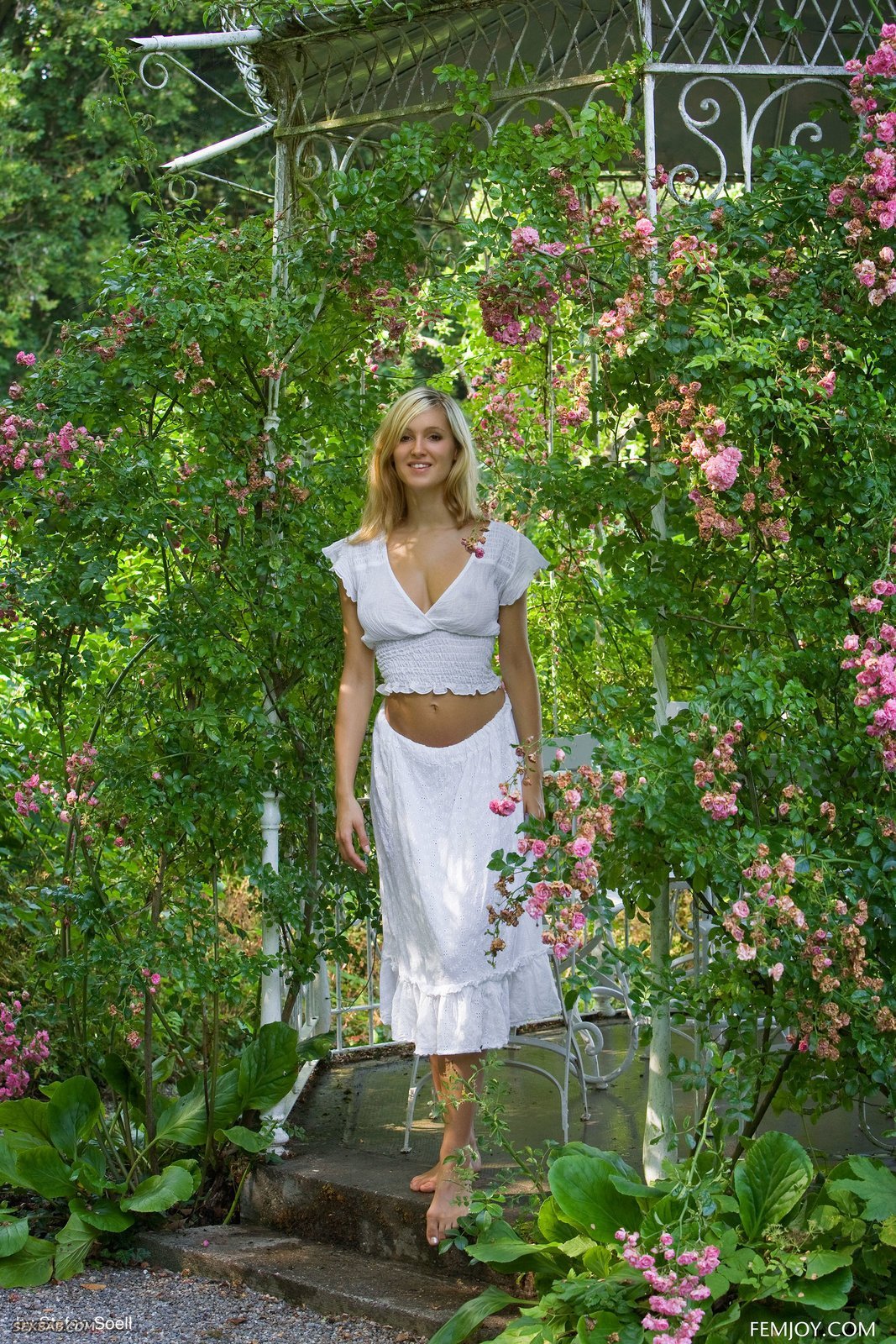 Описание: Обнажая перед нами соблазнительное тело, сексуальная девушка с шикарной упругой грудью не стесняется принимать самые откровенные позы, в которых можно разглядеть все её прелести. А помимо больших сисек, блондинка позволит взглянуть на бритую киску, которая заманчиво выглядывает из под подола длинной юбки.