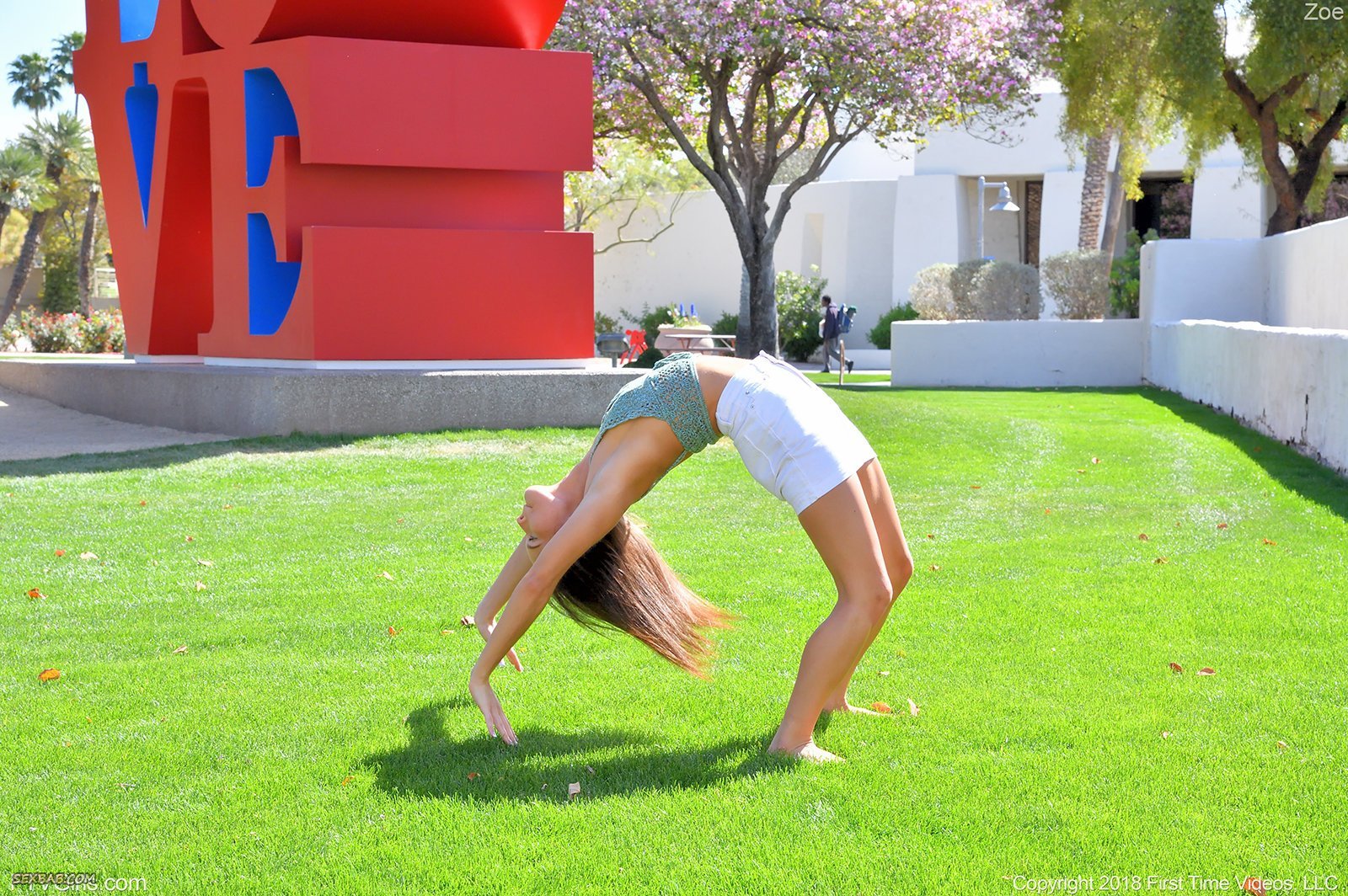 Описание: Мило улыбаясь во все тридцать два зуба, молоденькая девица в коротенькой юбке начинает эротично позировать на улице, в процессе меняя позиции и места, засвечивая белые трусики и гладко выбритую письку. В будущем очаровательная крошка низенького роста даже прогибалась раком и становилась на мостик, прогибая спинку.