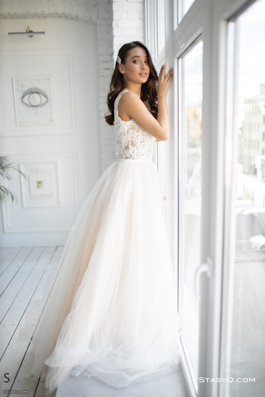 Описание: Обворожительная и невероятно сексуальная невеста в чулках эротично позирует в пышном белом платье и без него. Обнаженной стройная красотка с татуировками под натуральными упругими сиськами нежно поглаживала себя руками и ощущала возбуждение, так же не забывала в процессе засвечивать бритую письку и сочную попку.