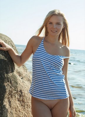 Описание: Скинув с себя тельняшку, сексуальная милая блондиночка эротично позирует голой у моря, ощущая наслаждение и возбуждение от этого увлекательного процесса. Чаще всего молодая красавица с маленькой грудью засвечивала бритую письку и сочную задницу, прогибаясь раком и раздвигая свои стройные ножки.