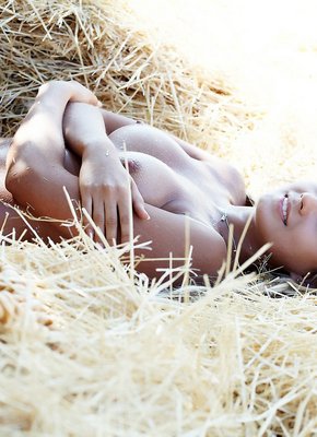 Описание: Устроившись на стоге сена, молоденькая голубоглазая блондинка с завязанными волосами в косички, медленно сняв платье и трусики, эротично обливается молоком. И как только прохладная белая жидкость начала стекать по натуральных сиськах и гладко выбритой письке с плоским животиком, ощущая удовольствие, девушка постаралась максимально раздвинуть промежность.