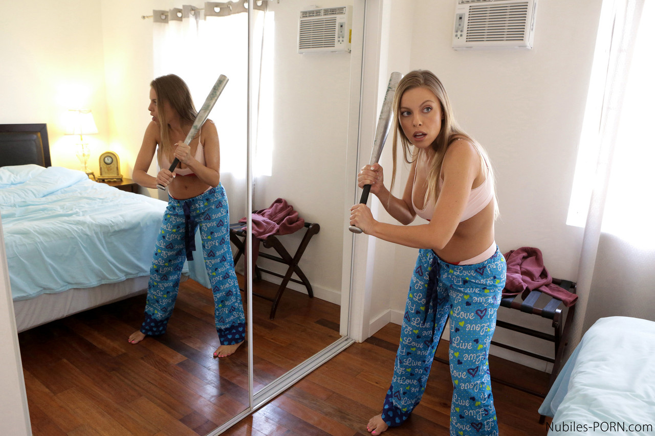 Грудастая блондинка Бритни Эмбер сосет и трахается в жопу с большим членом вора (20 фото)